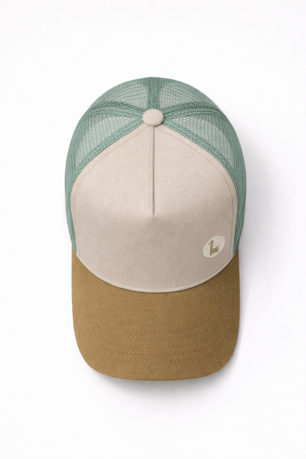 GORRA TRUCKER PREMIUM CUSTOMIZADA BORDADA BEIGE CRUDO VERDE